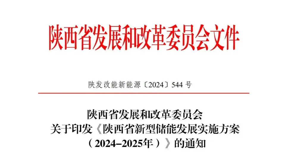 近日,陜西省發(fā)展和改革委員會印發(fā)《陜西省新型儲能發(fā)展實施方案(2024-2025年)》的通知。